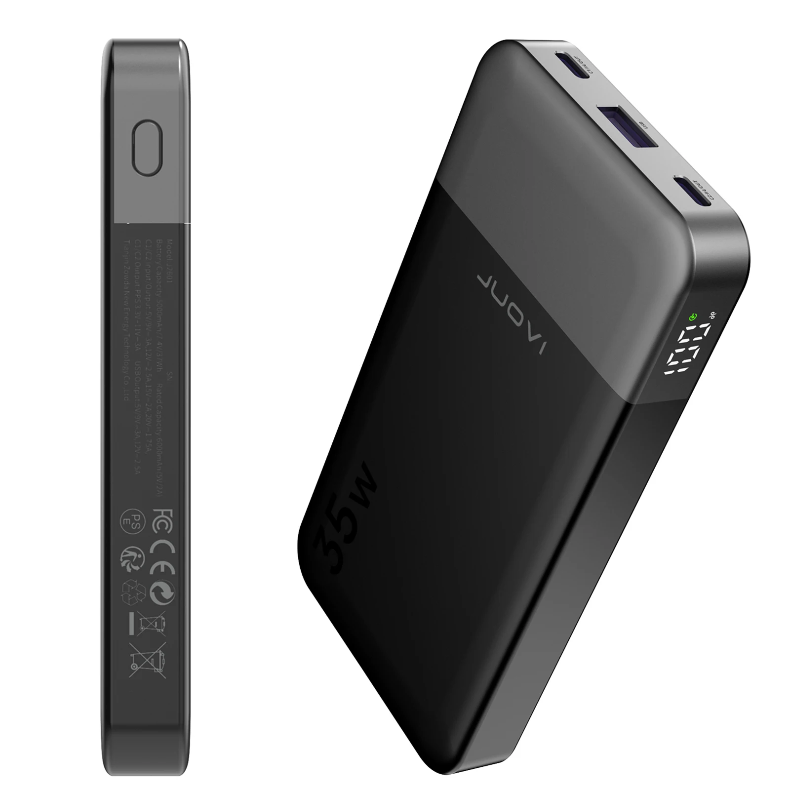 | Output | USB-A1:5V/3A, 9V/3A, 12V/2.5A,; 30W(max) USB-A2:5V/3A, 9V/3A, 12V/2.5A,; 30W(max) Type-C1:5V3A 9V3A 12V2.5A 15V2.3A 20V1.75A 35W(MAX) Type-C2:5V3A 9V3A 12V2.5A 15V2.3A 20V1.75A 35W(MAX) |